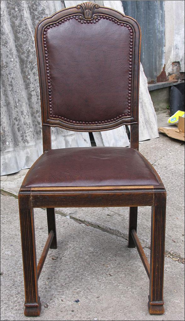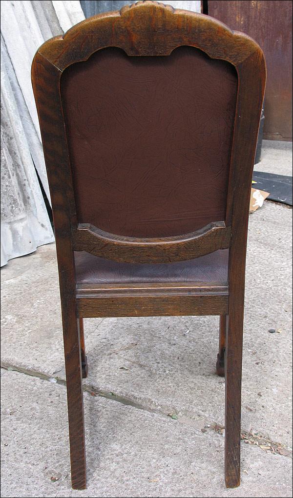 Komplet 4 krzeseł dębowych z lat 20-tych. Materiał skóropodobny, na pasach.060928
