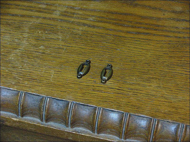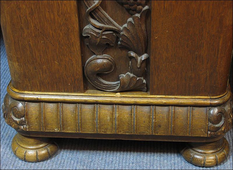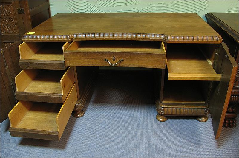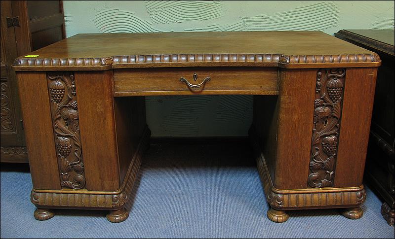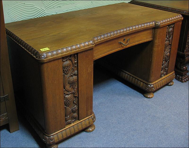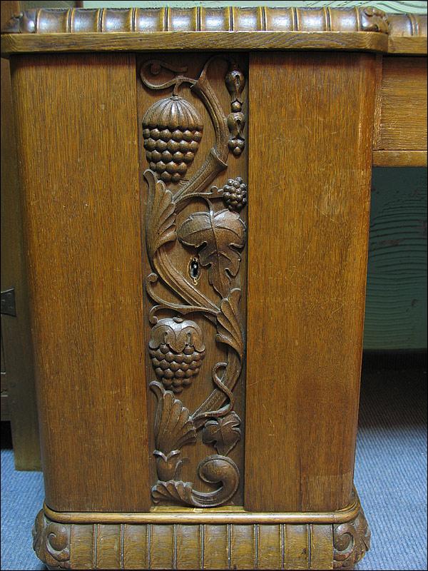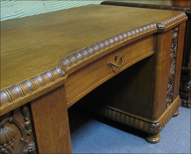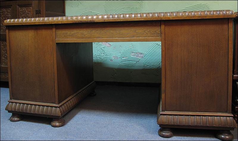 Dwustronne, dębowe biurko. Motyw roślinny na drzwiczkach, nogi toczone.011001064