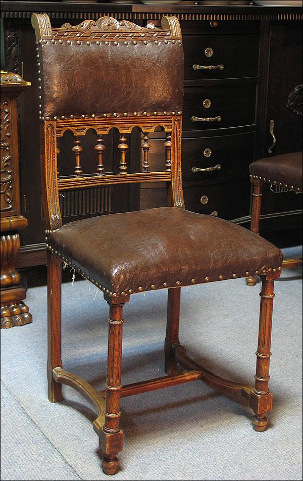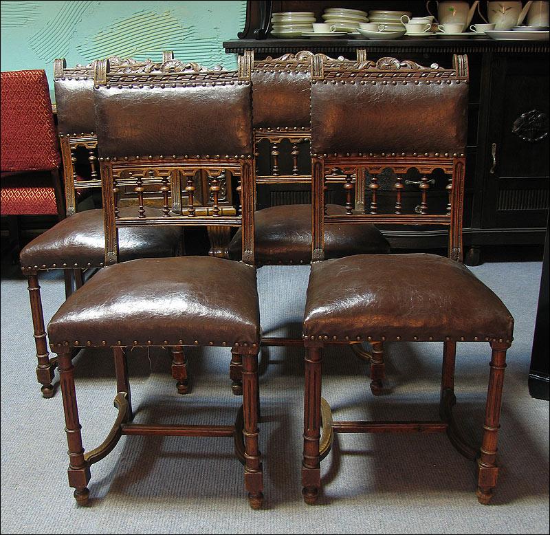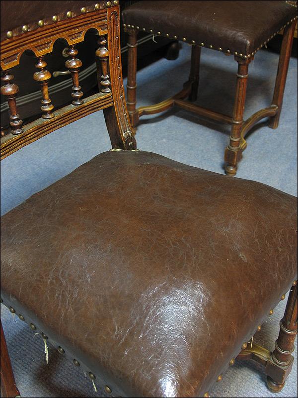 Piękne, eklektyczne krzesła. Tapicerka skórzana, stelaż dębowy, na sprężynach.0110155