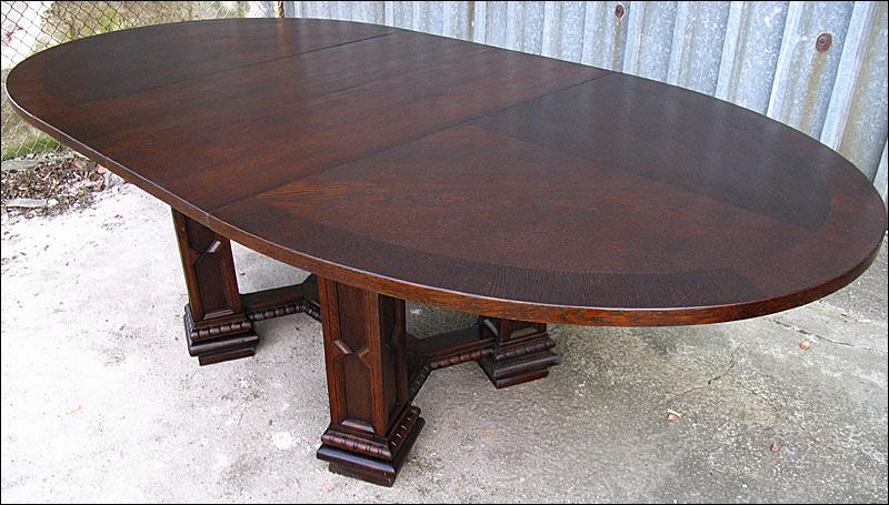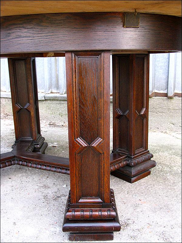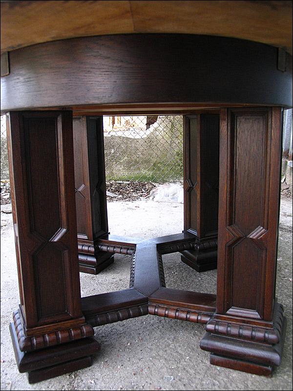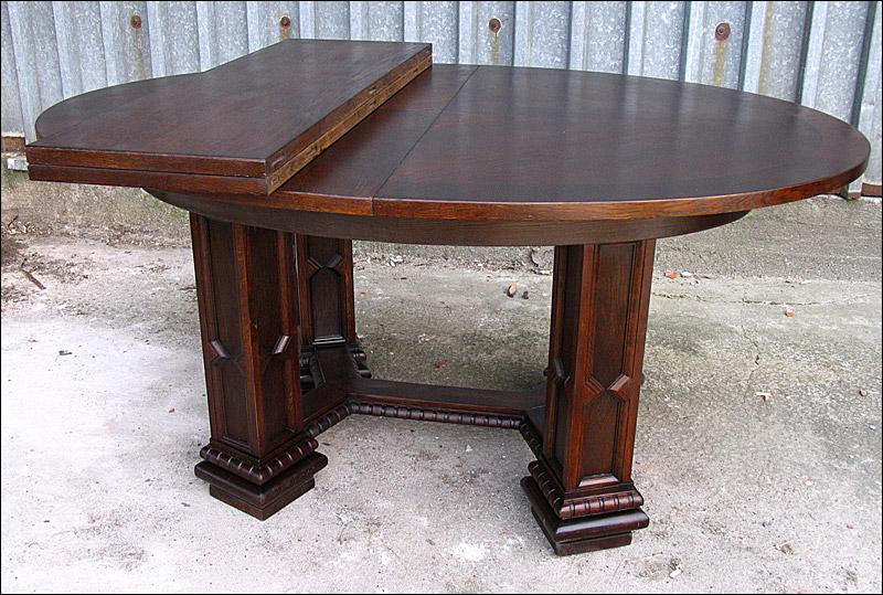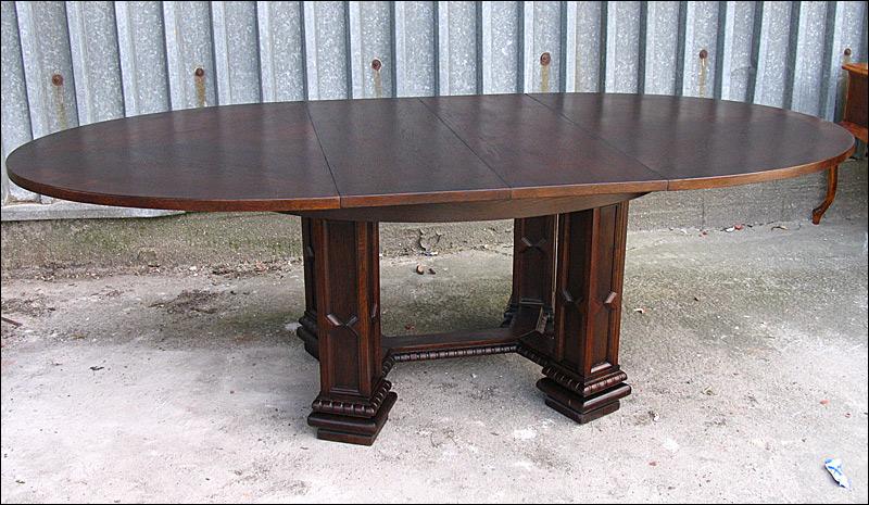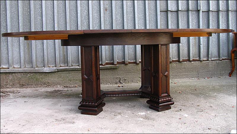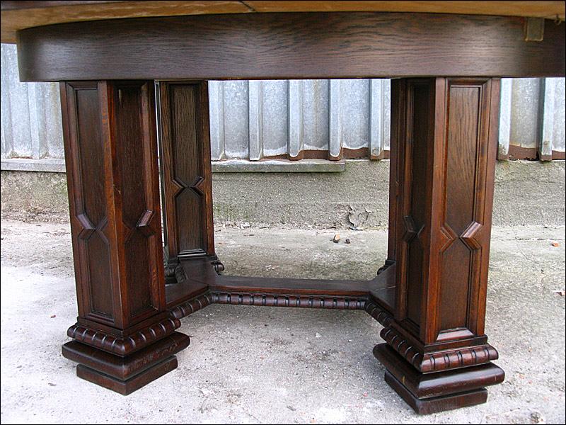 Rozkładany stół na czterech masywnych, złączonych filarach.150508232