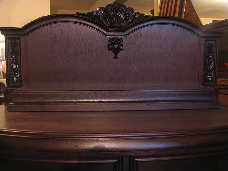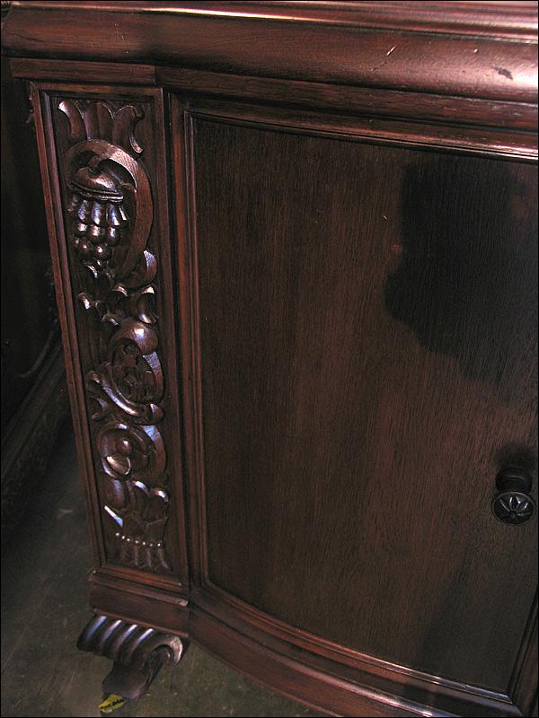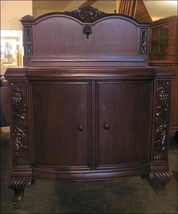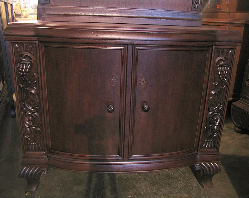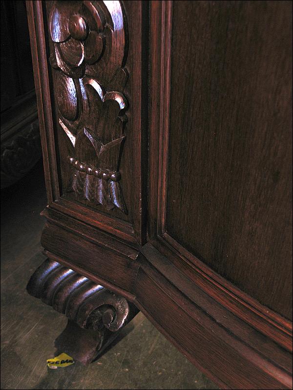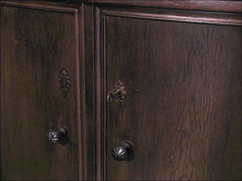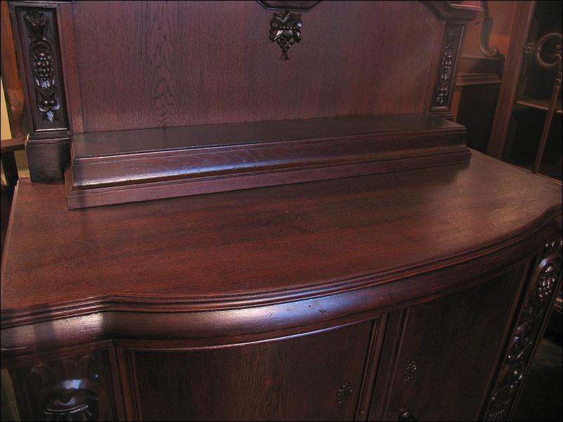 Dębowa komoda z nadstawką z okresu międzywojennego. Snycerka z boku drzwiczek i w nadstawce, nogi gięte.2910194