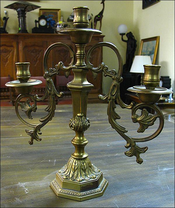 Mosiężny świecznik trzyramienny. 30050818