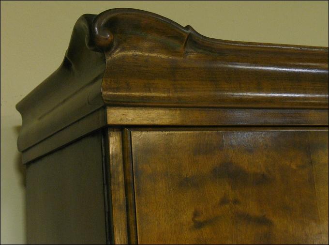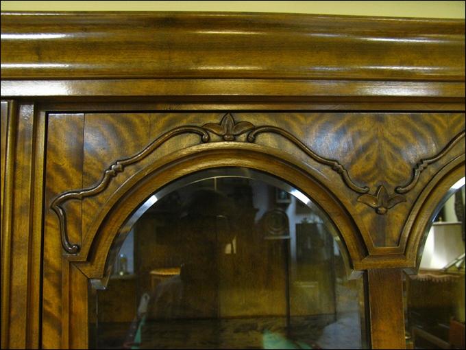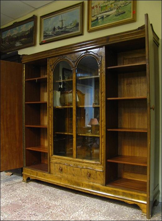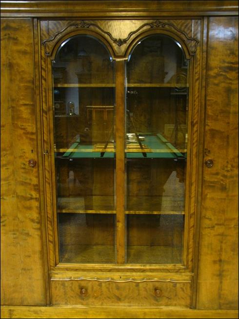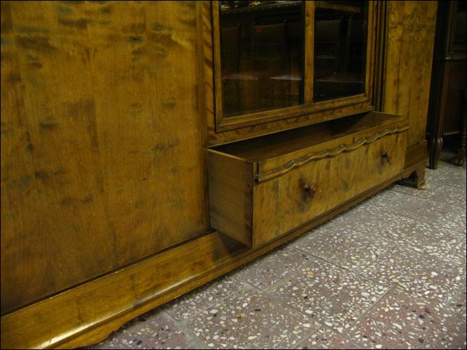 Biblioteka z okresu międzywojennego wykonana w stylu biedermaier'owskim.Dwie szlifowane szyby z łukami chronią zawartość witryny przed kurzem. Brzoza płomienista zarówno na zewnątrz mebla jak i w witrynie. Za bocznymi drzwiami fornir mahoniowy. Pod witryną szuflada niewielkich rozmiarów, ale zawsze cieszy...