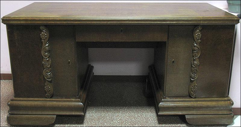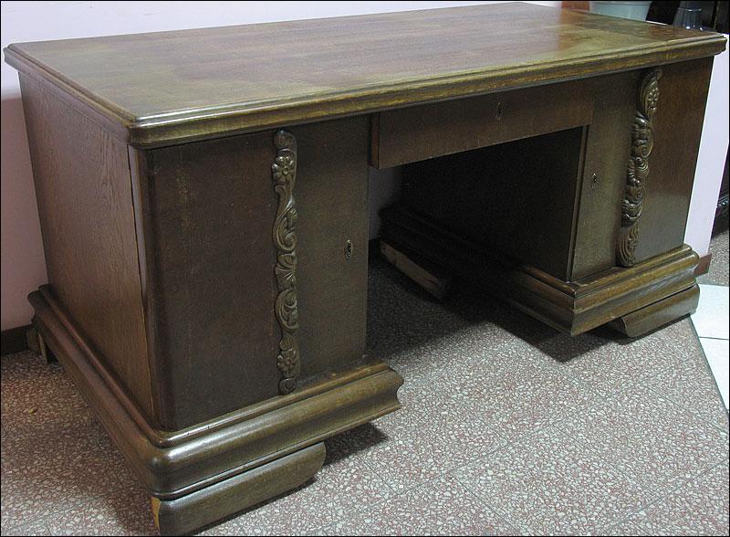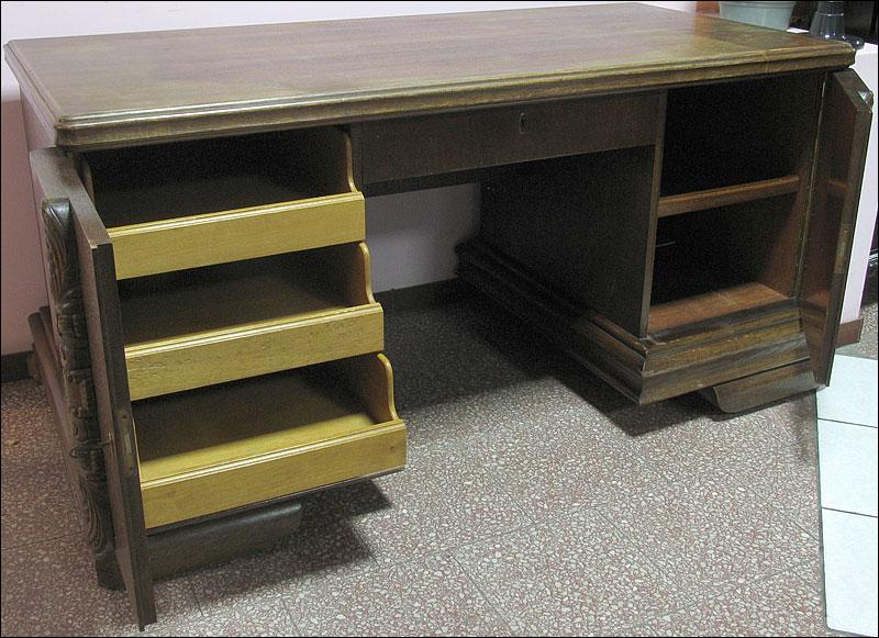 Ładne biurko w stylu art deco. Ciekawe zdobienia na drzwiczkach.