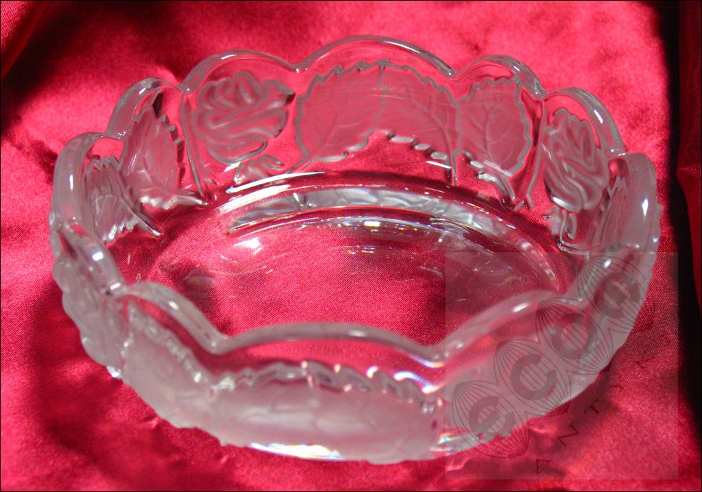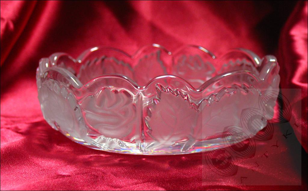 Szklana salaterka z motywem liści. Na innej aukcji wystawiamy drugą taką salaterkę.