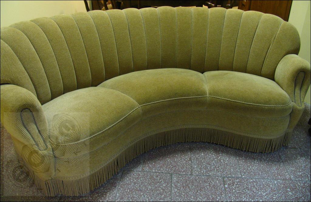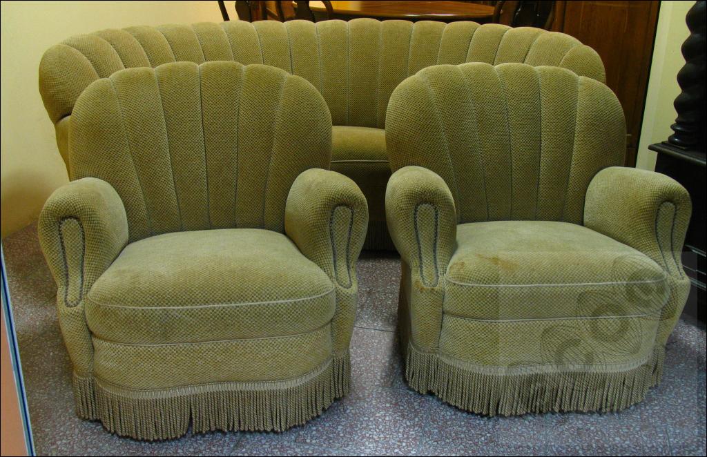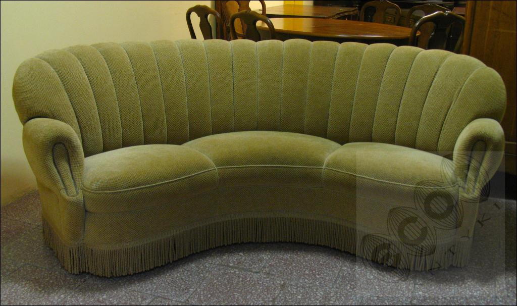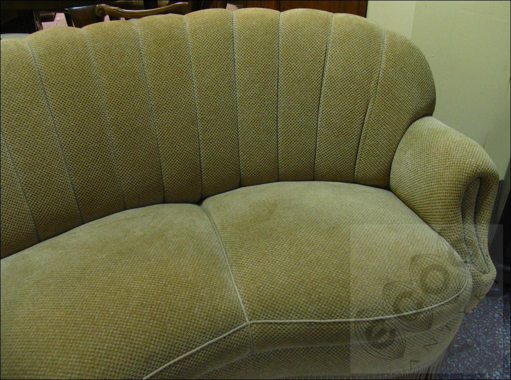 Przepiękny komplet wypoczynkowy sofa i dwa fotele. Sofa w łuku, czyli idealna do narożnika, ale również i na środek salonu. Fotele z wygodnymi siedziskami, meble z niewielkimi śladami użytkowania, lekko zaplamiony jeden z foteli. Stan poszycia jest jednak prawie idealny, co sprawia, że komplet można traktować jako gotowy do wstawienia.