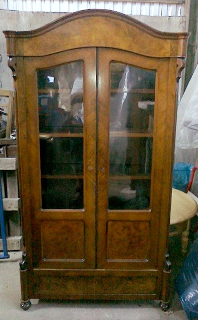 Witrynka bądź biblioteczka Louis Philippe z lat 1860-1870. para przeszkonych drzwi, Poniżej ich pojemna szuflada.