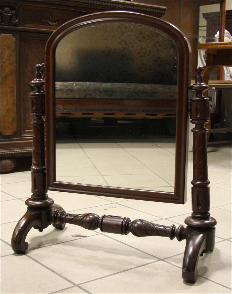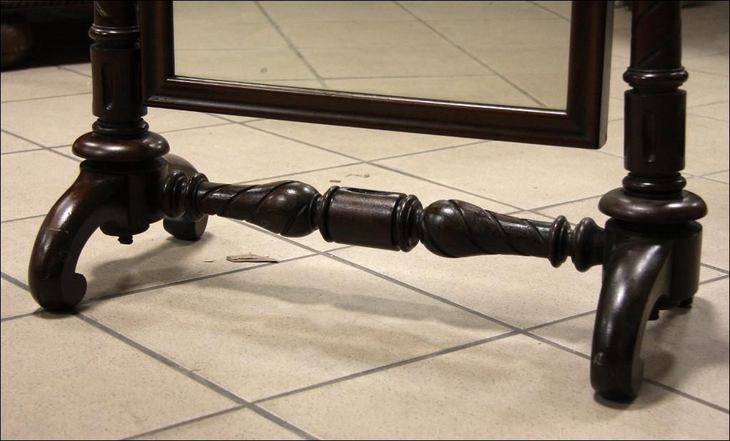 Niewielkie, stojące lustro z regulowanym kątem nachylenia. Mebel zaprojektowany jako lustro na komodę, którą wraz z lustrem będzie można wykorzystać jako toaletkę lub szafkę do przedpokoju. Mebel wykonany z mahoniu.