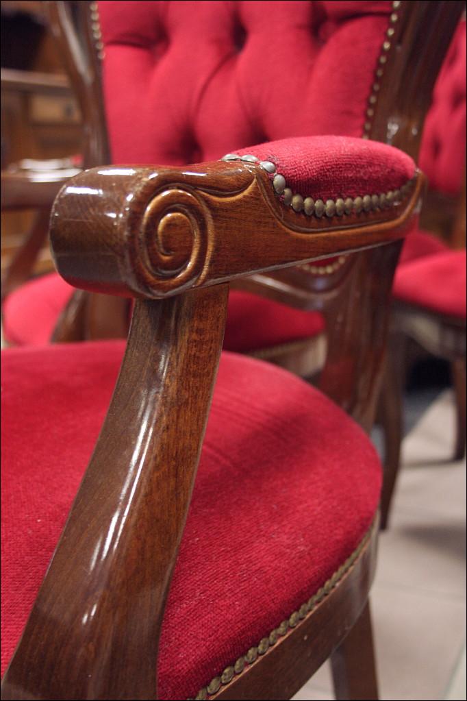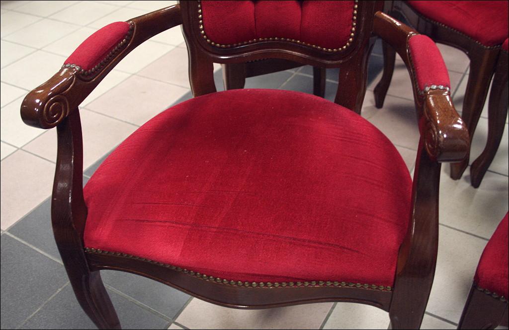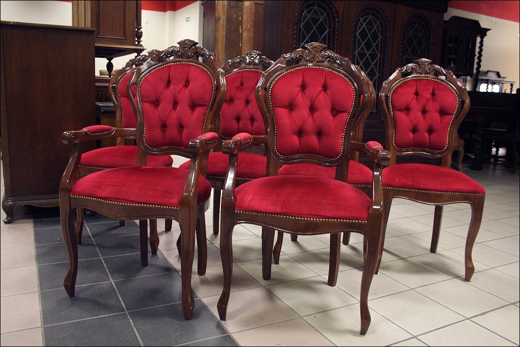 Krzesła z podłokietnikami: wysokość 108cm, szerokość 58cm, długość 48cm