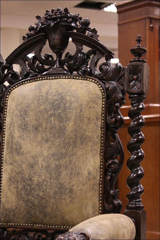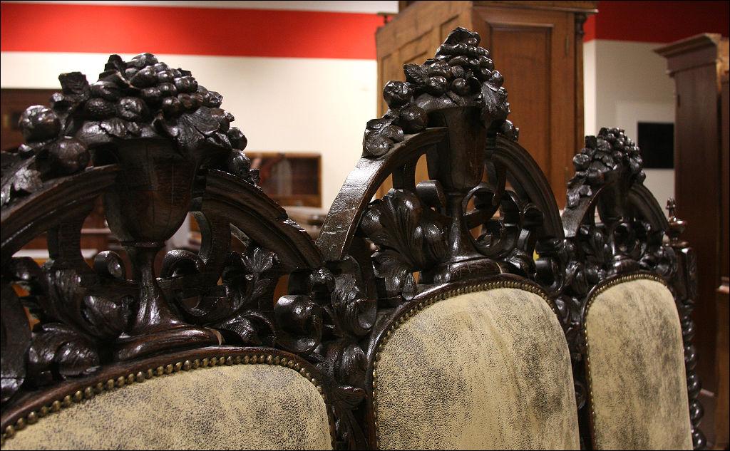 Neorenesanowa sofa z ażurowym stelażem, który w zasadzie jest jedną wielką rzeźbą. O bogactwie i różnorodności zdobień mebla można by dużo pisać, zdecydowanie wygodniej jest jednak obejrzeć mebel, chociażby na zdjęciach - oczywiście zapraszamy do nas żeby popatrzeć na niego na żywo a nawet usiąść na nim i przez chwilę poczuć jego historię ...