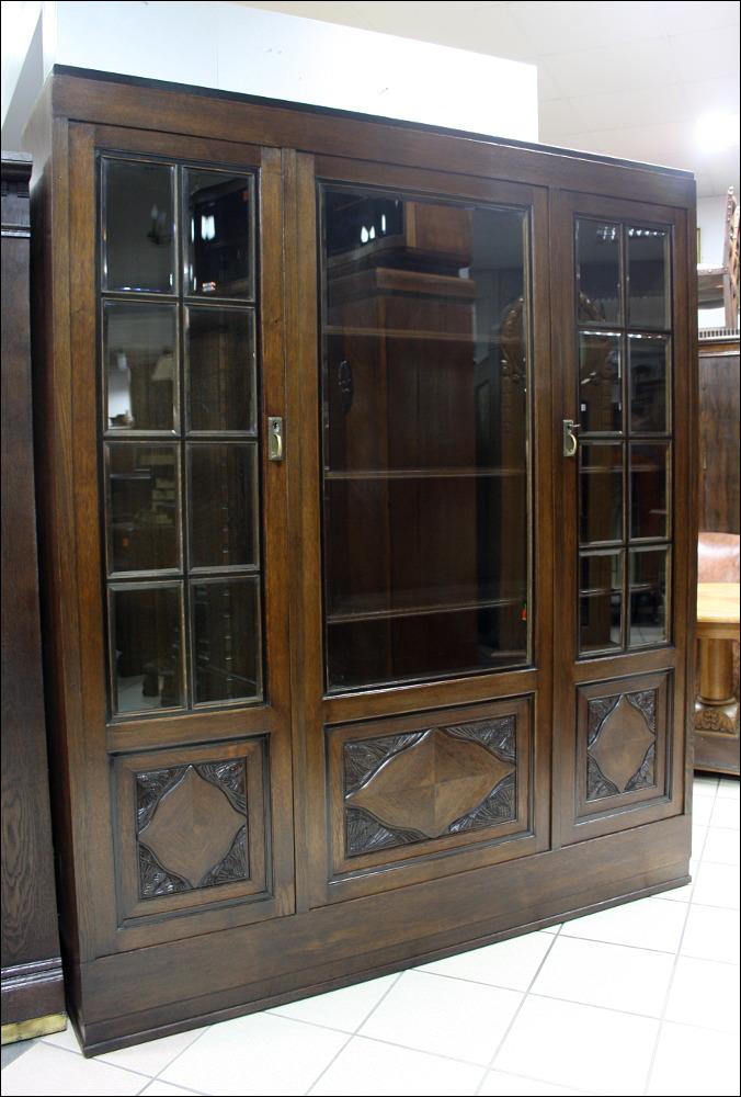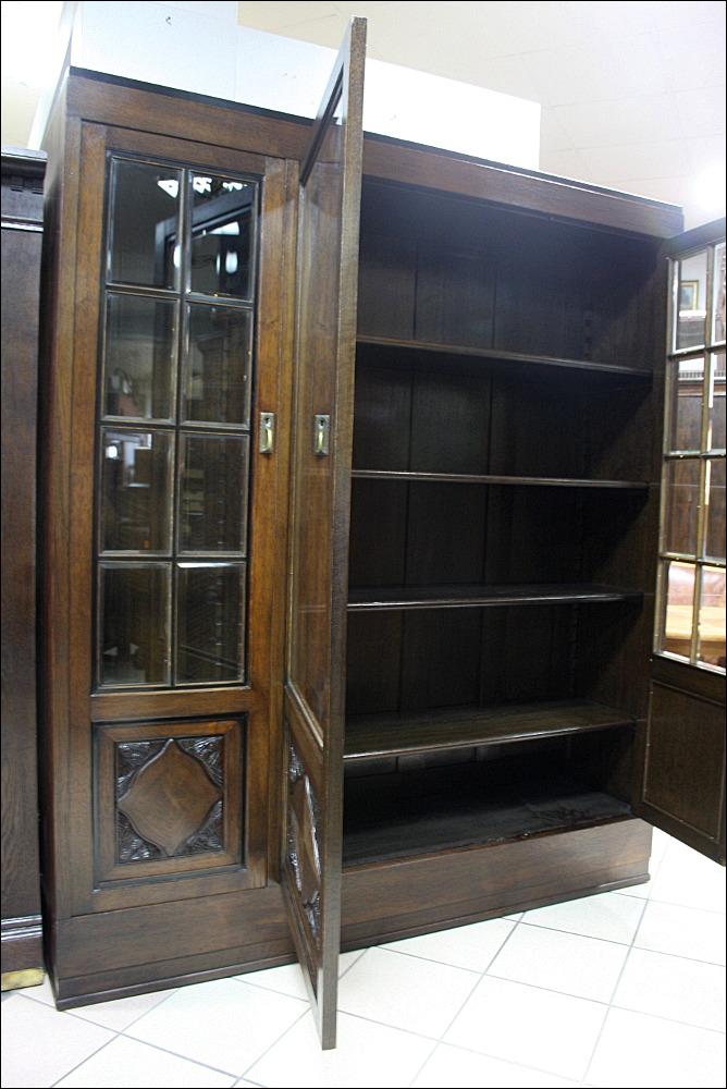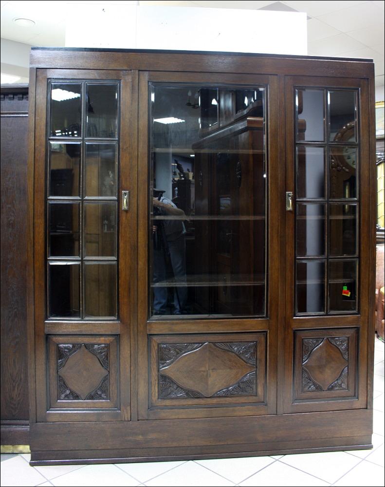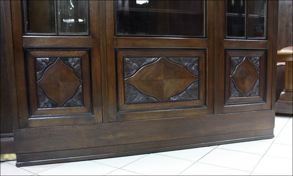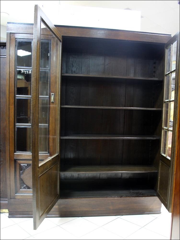 Komplet mebli gabinetowych z początku XX wieku. Biblioteka trzydrzwiowa, przeszklona szybami fazowanymi. W dolnej części subtelne snycerskie dekoracje. Biurko głębokie z blatem pokrytym materiałem przypominającym starą, wysłużoną skórę- w odróżnieniu od skóry, ciepłym w dotyku. Zdobienia analogiczne do tych, które znajdują się na bibliotece. Lewa szafka z czterema szufladami, prawa z dwoma półkami. W środkowej części szuflada zamykana na klucz.