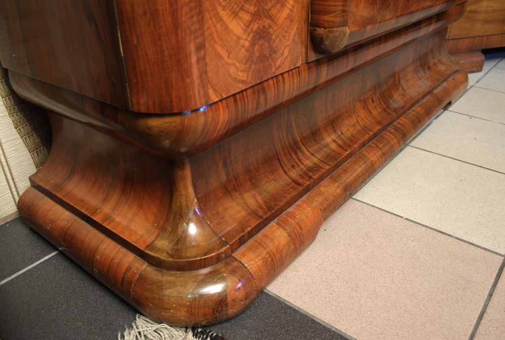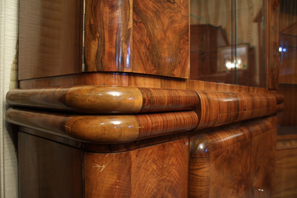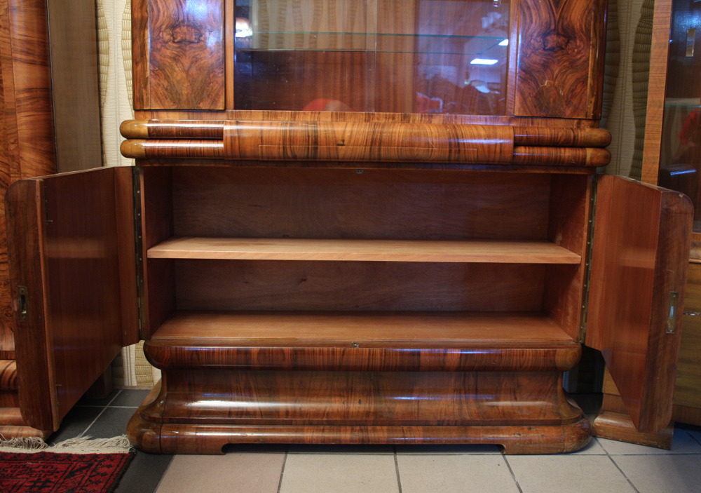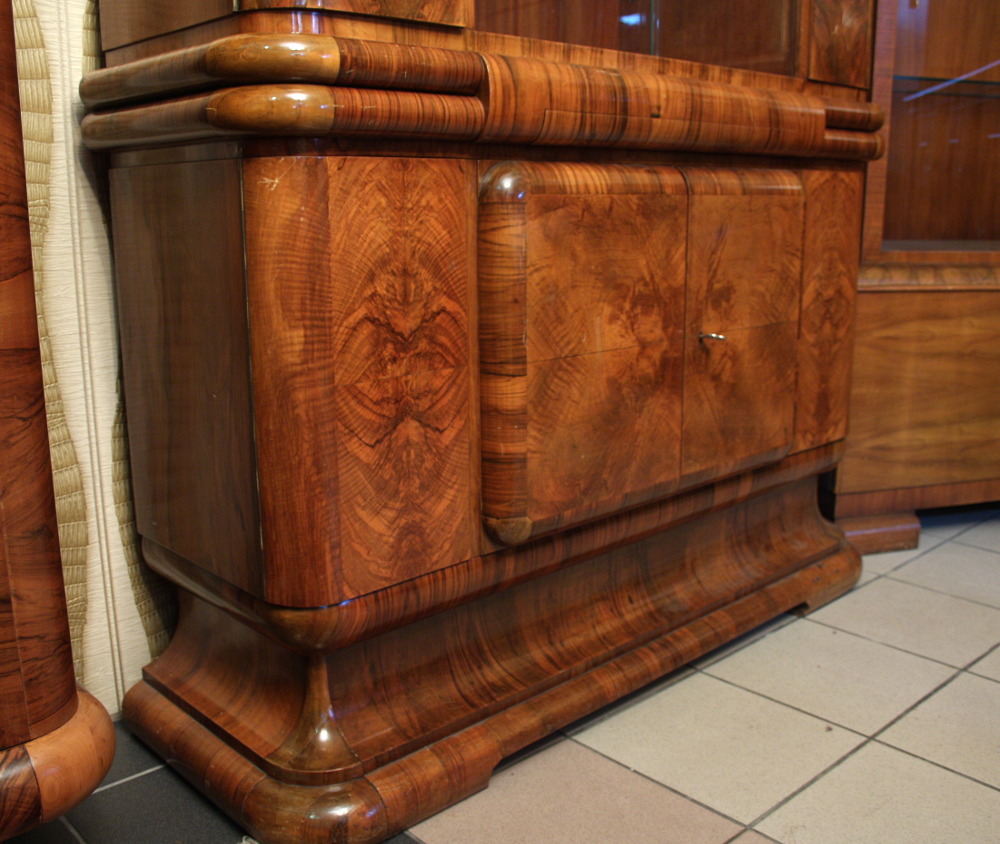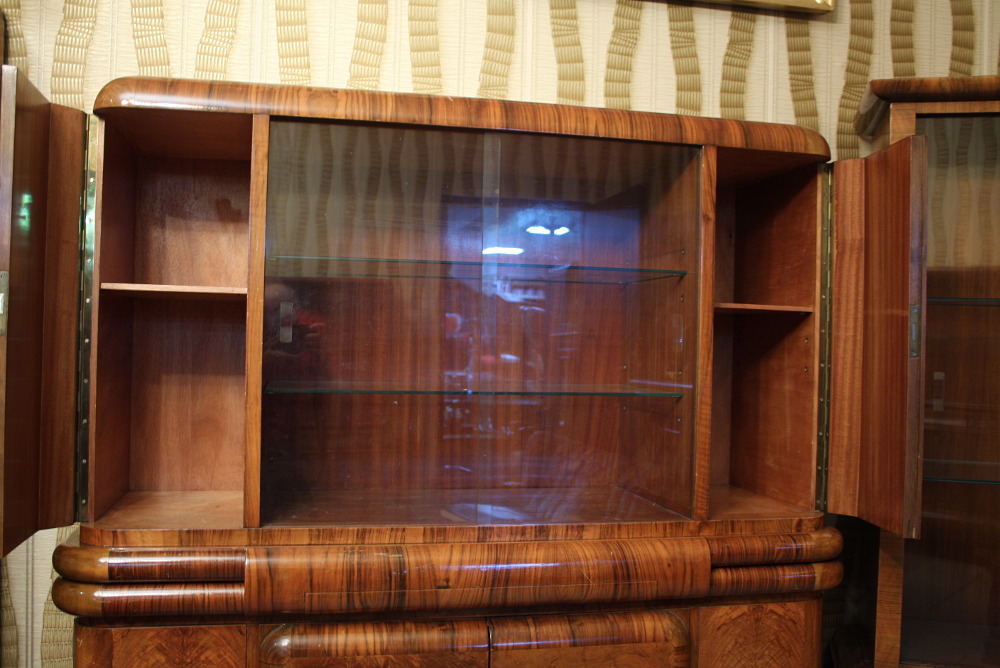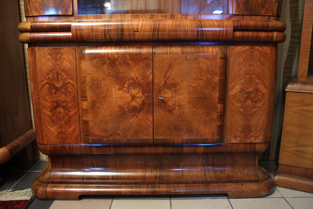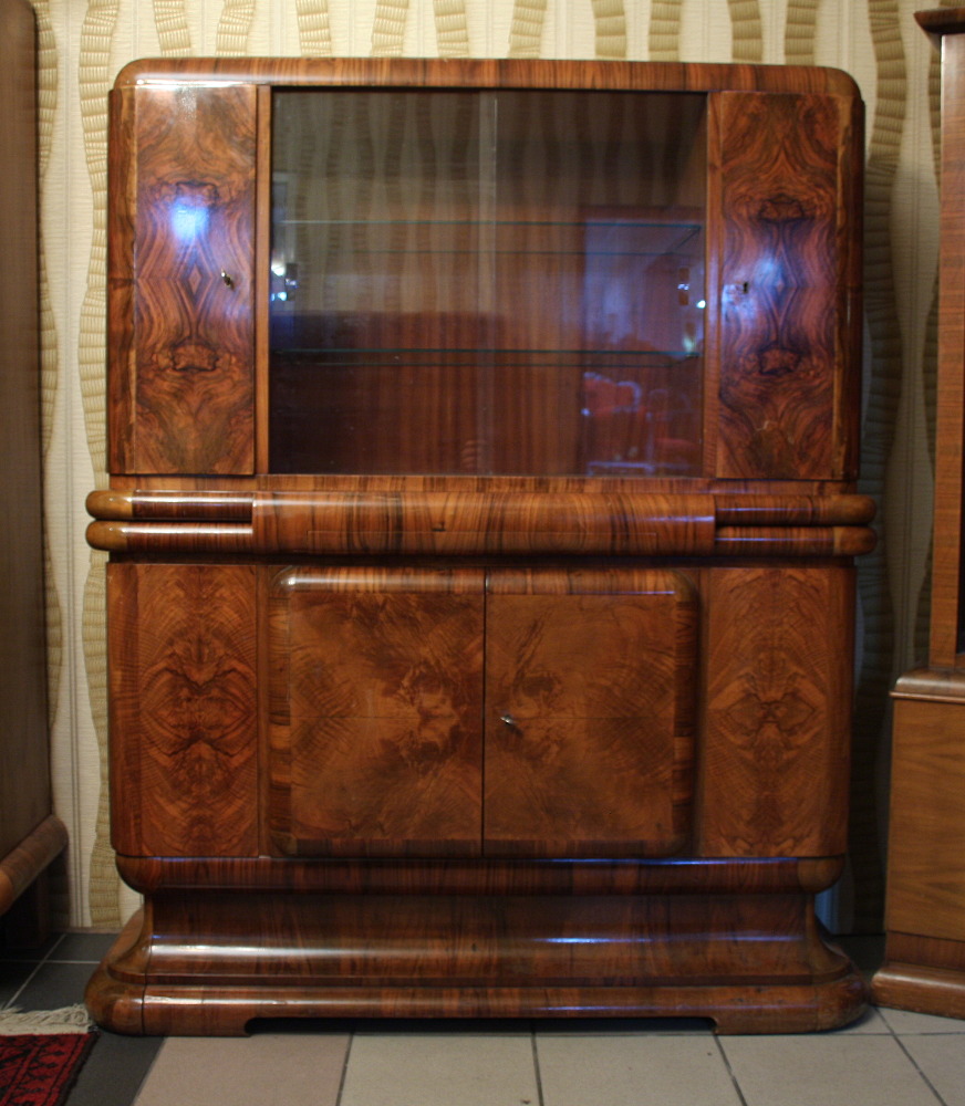 Niewielki kredens art deco. "Rasowy" przedstawiciel tego stylu mebel - ciepłe kształty, piękny rysunek orzecha pokrywający całą powierzchnię mebla - oczywiście poza tylną częścią.