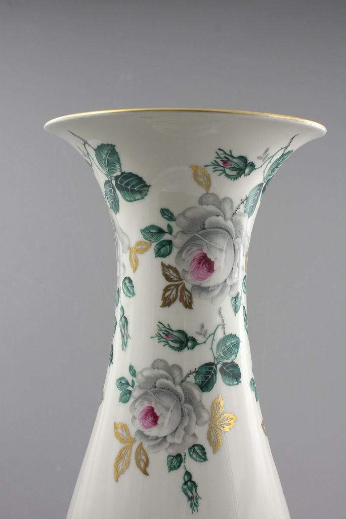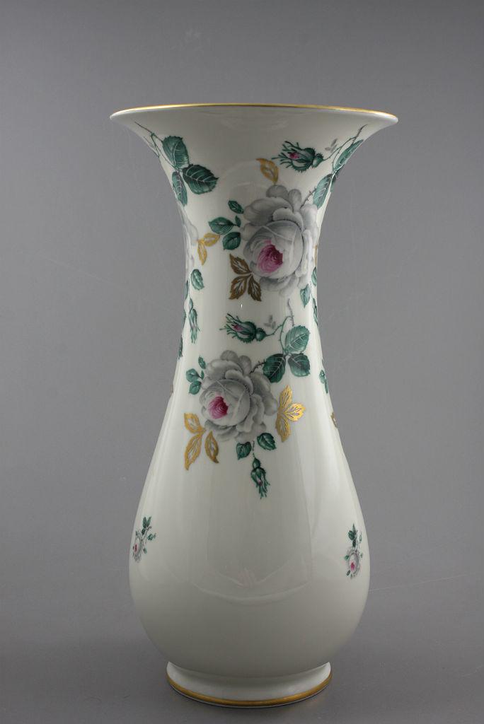 Duży wazon Eschenbach. Porcelana koloru ecru dekorowana motywem różanym. Piękny, klasyczny kształt.