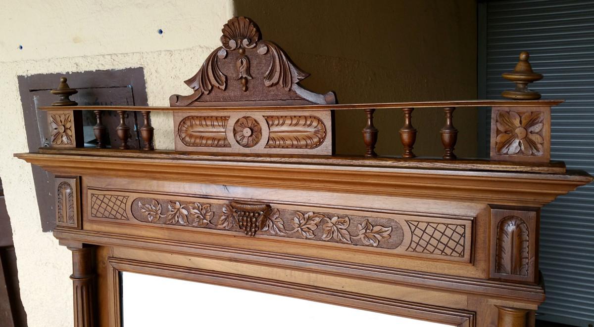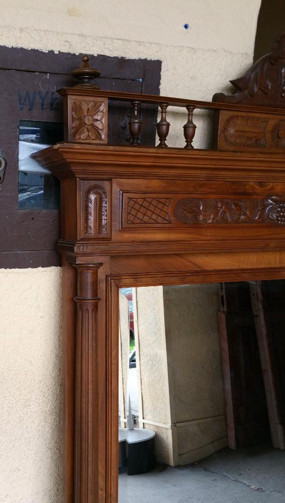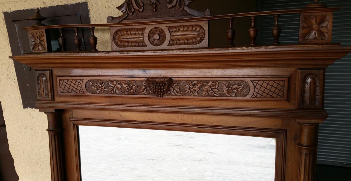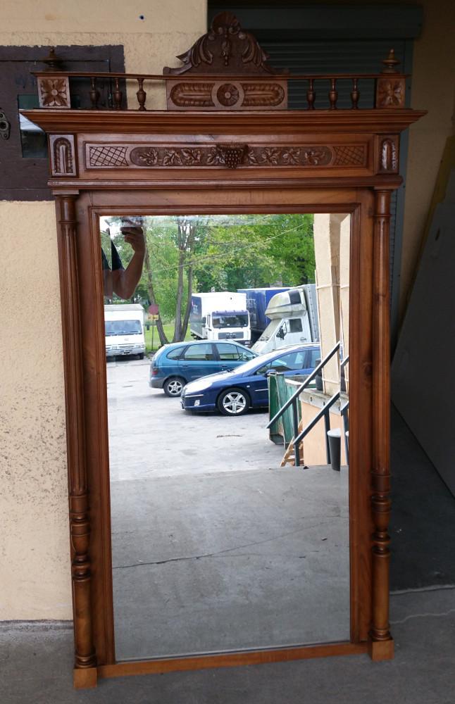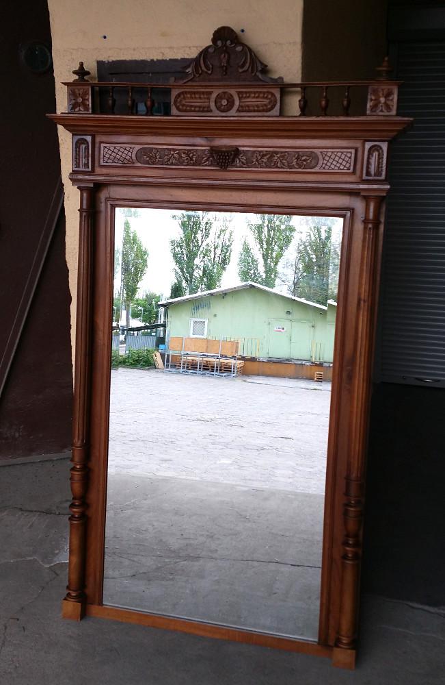 Lustro eklektyczne wykonane w orzechu. Tafla fazowana, stelaż ozdobny - typowy dla epoki.