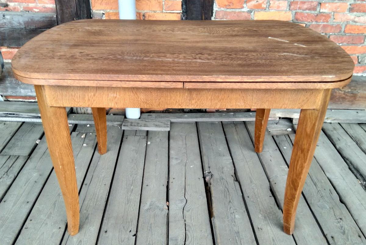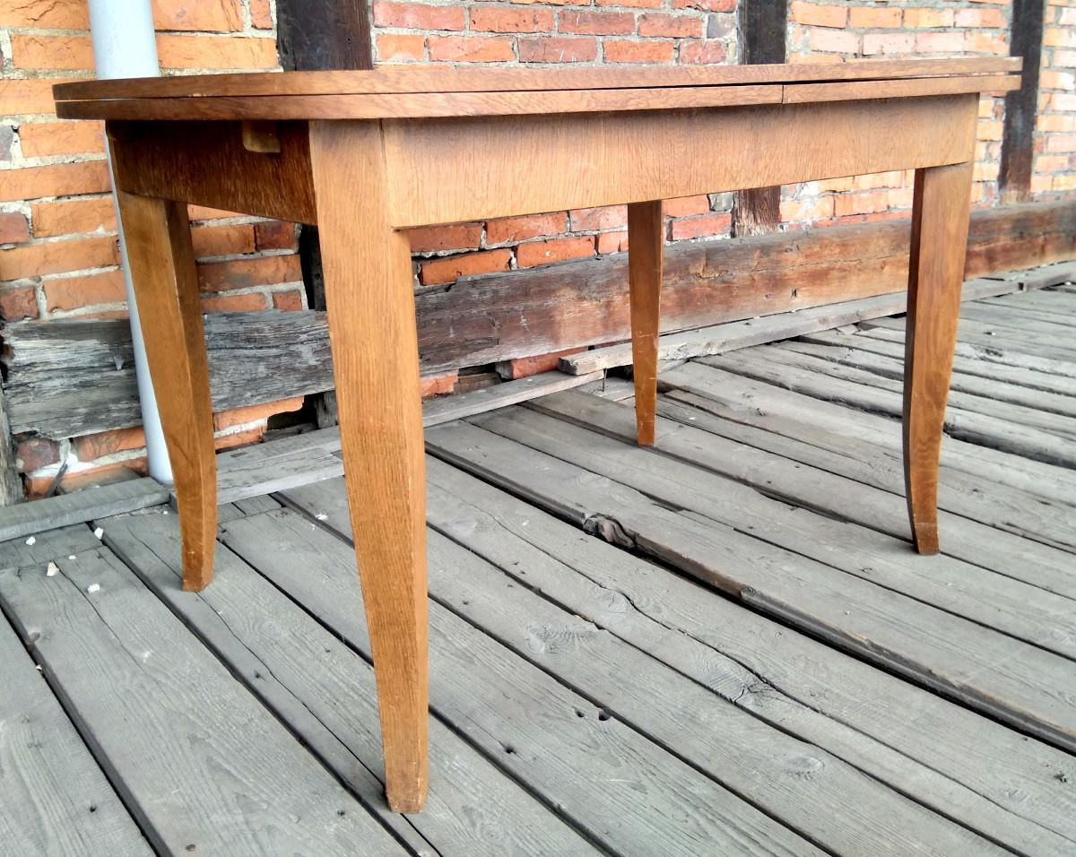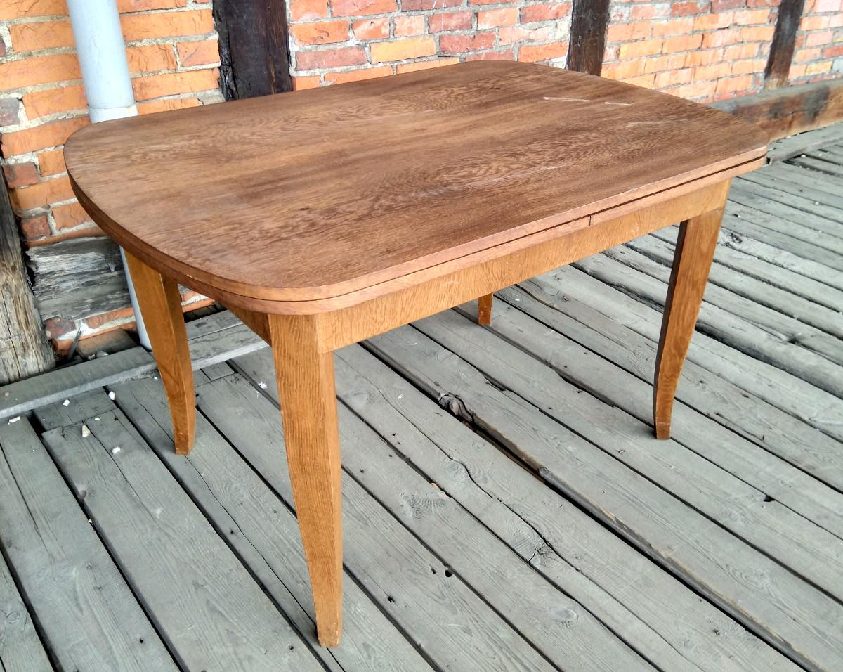 Dębowy stół na mocnych, lekko profilowanych nogach. Rozkładany - blaty wysuwane.