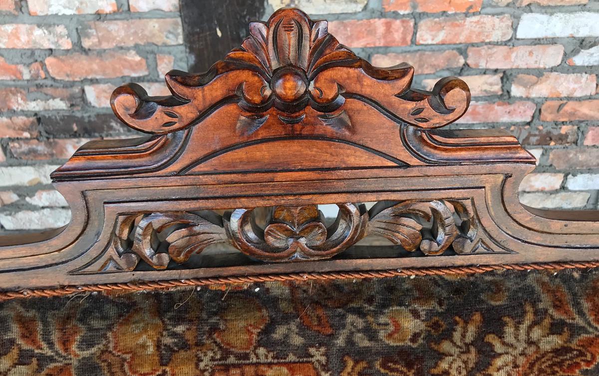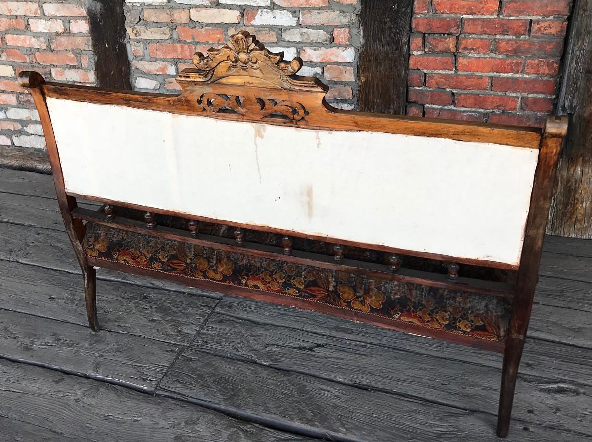 Ładna sofka eklektyczna. Mebel oryginalny, z epoki (koniec XIX wieku).. Stelaż typowy dla stylu - nogi i oparcia w formie toczonych tralek, piękne zwieńczenie oparcia.