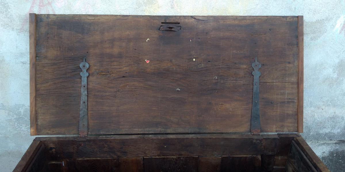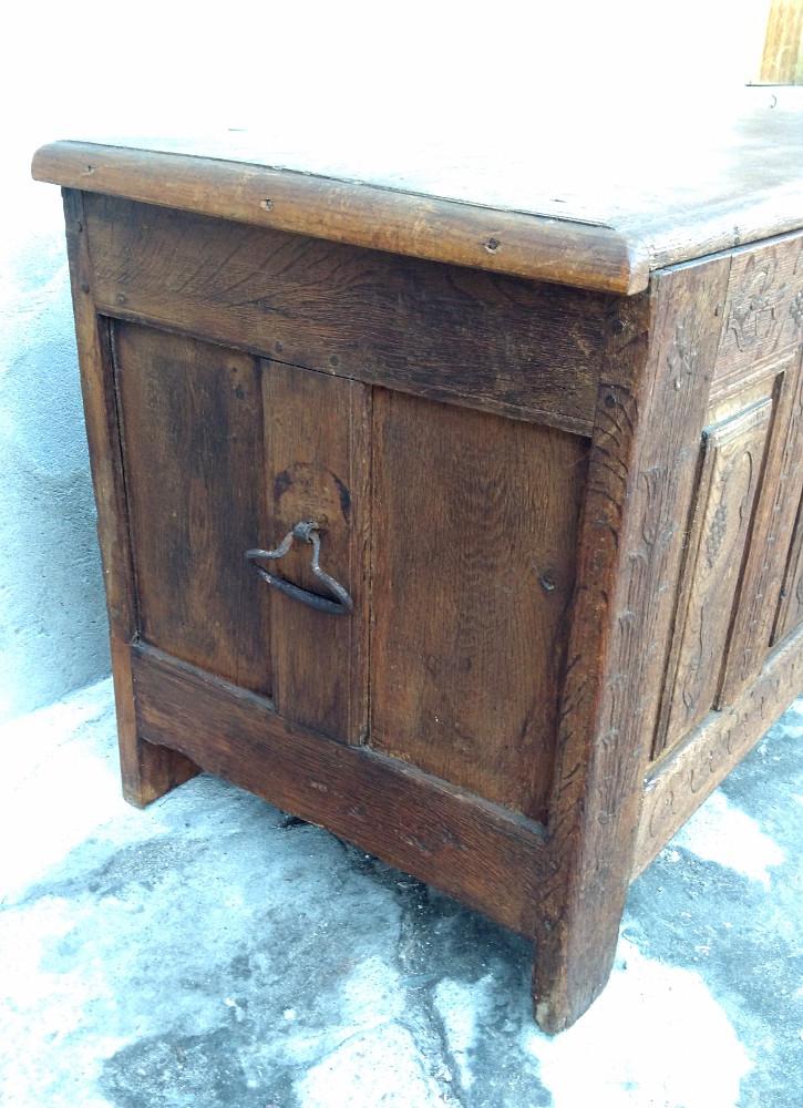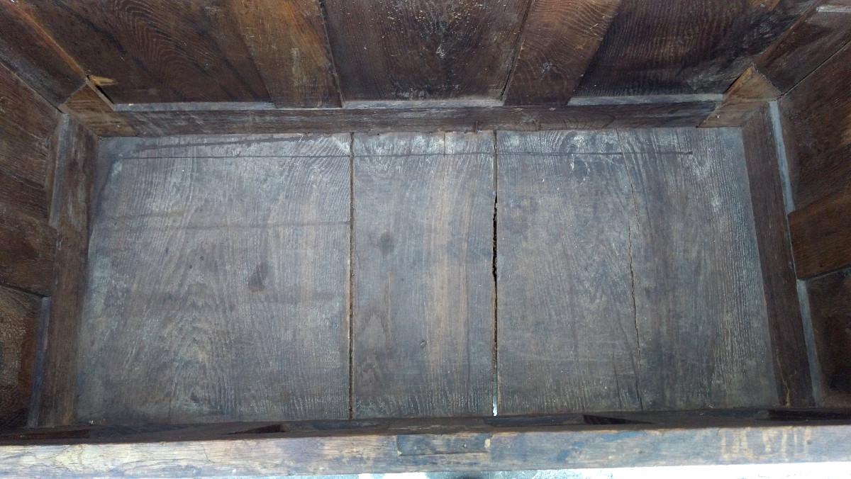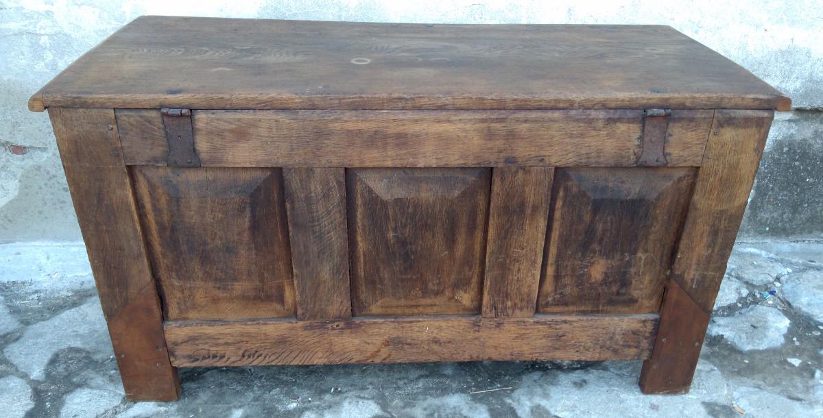 Oryginalna skrzynia barokowa. Wykonana w dębinie, front ze snycerskimi dekoracjami. Okucia i uchwyty oryginalne.