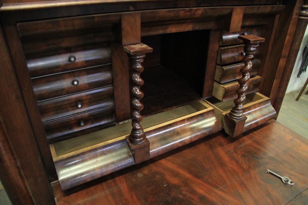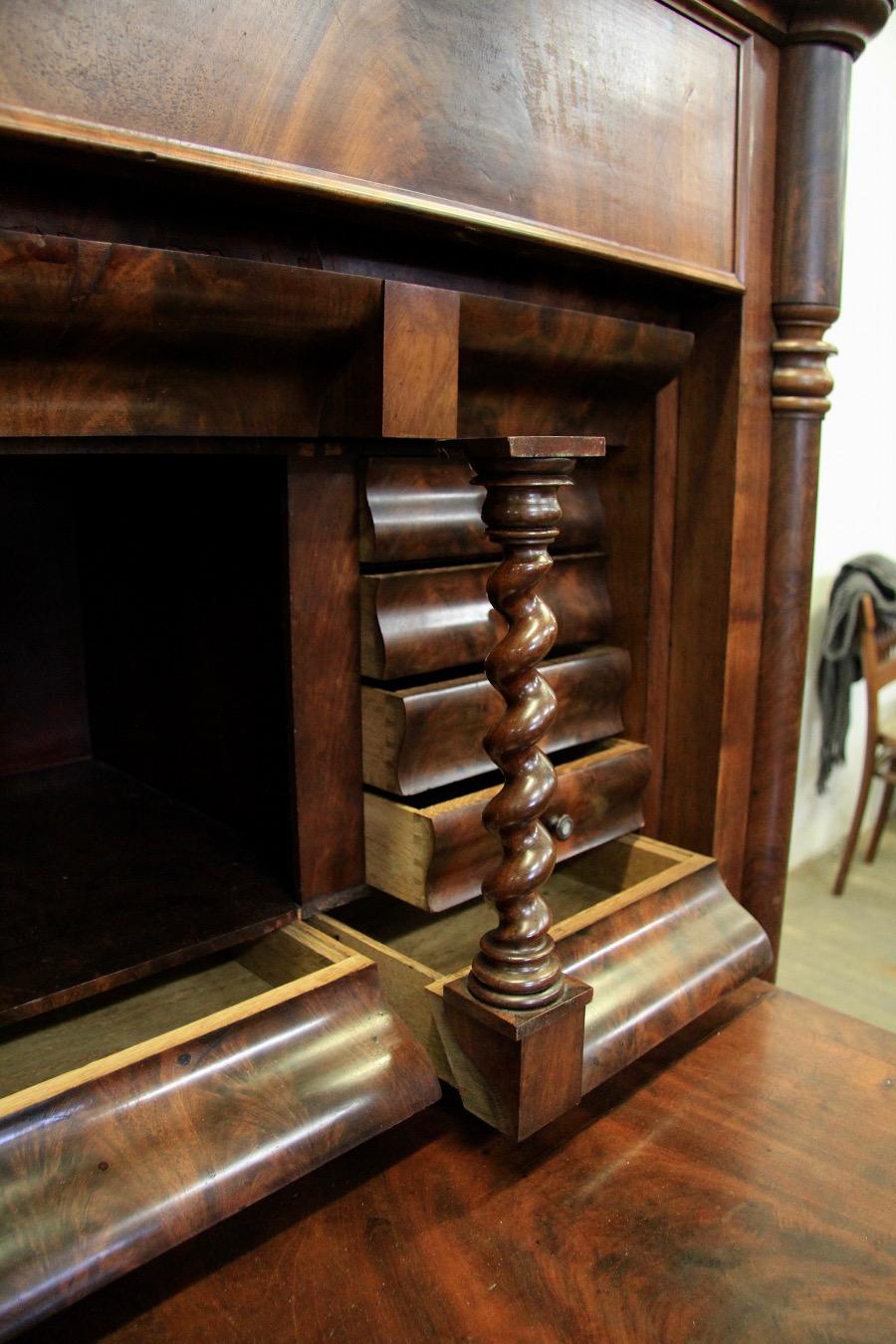 PRZEPIĘKNY MAHONIOWY SEKRETARZYK Z II POŁ. XIX W