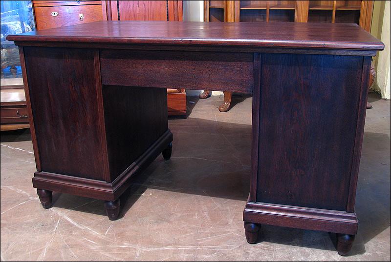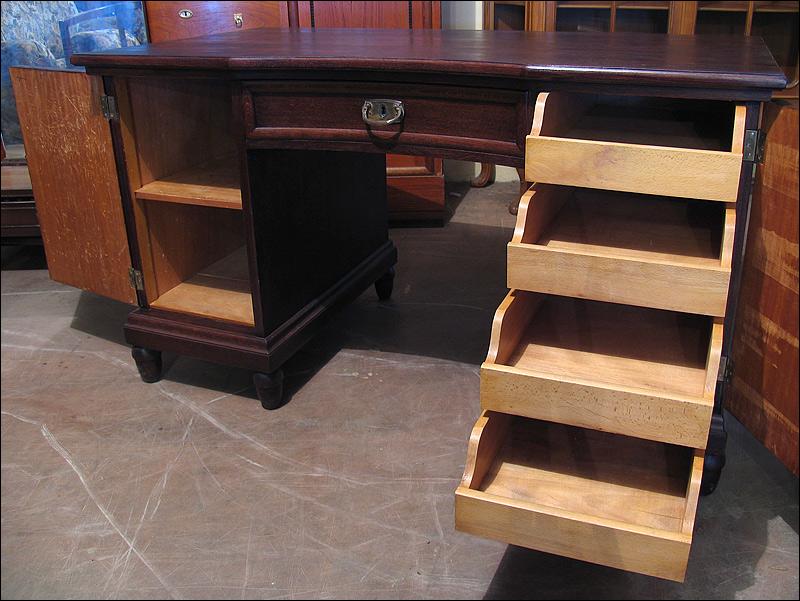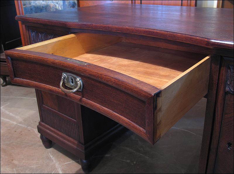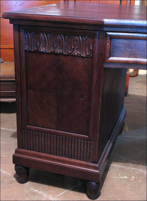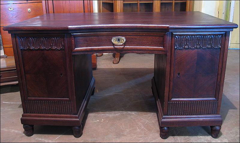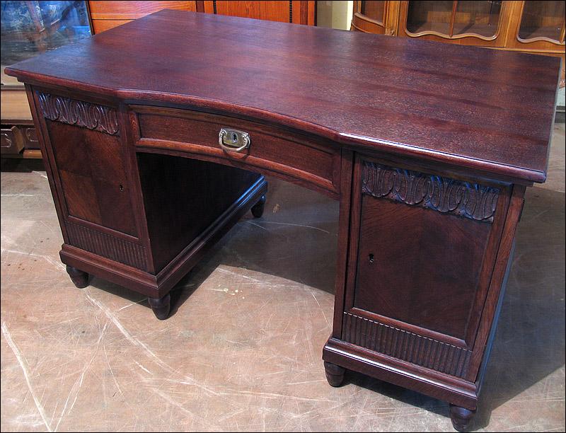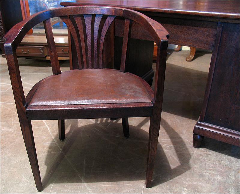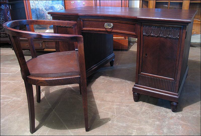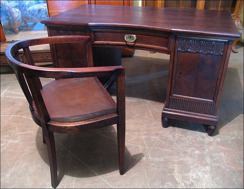 Ciekawy komplet do gabinetu, składający się z biurka i fotela.